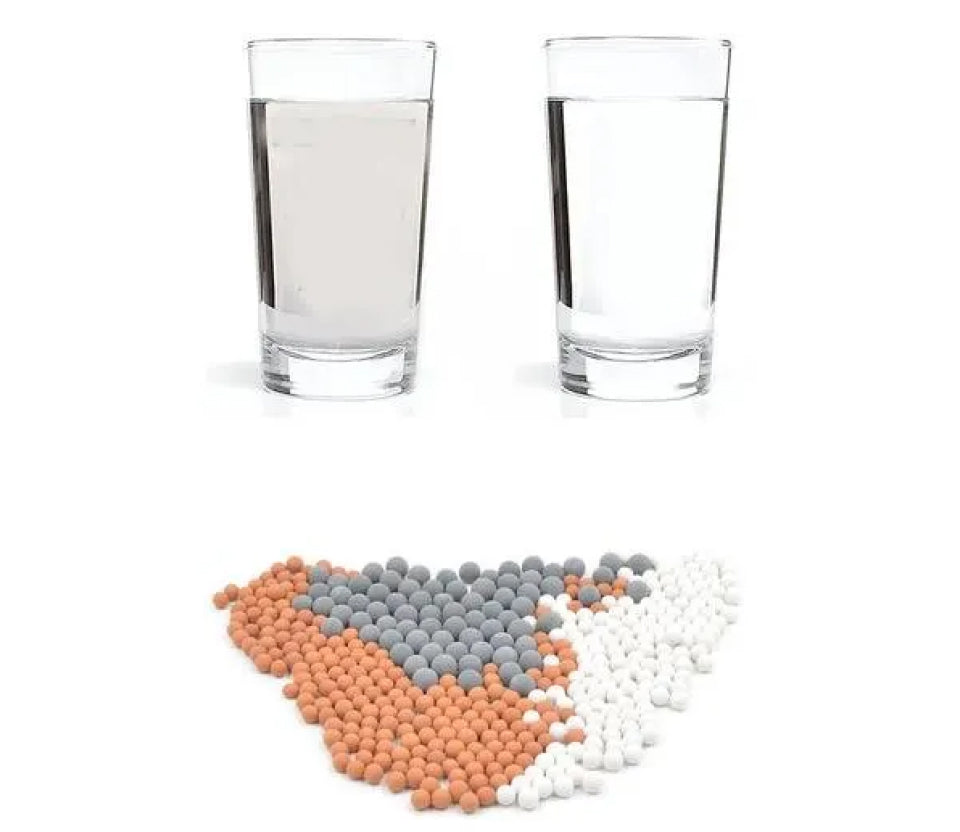 ✔️ مع أحجار معدنية أيونية لتصفية الكلور، والترسبات الجيرية، والأوساخ، والشوائب الأخرى