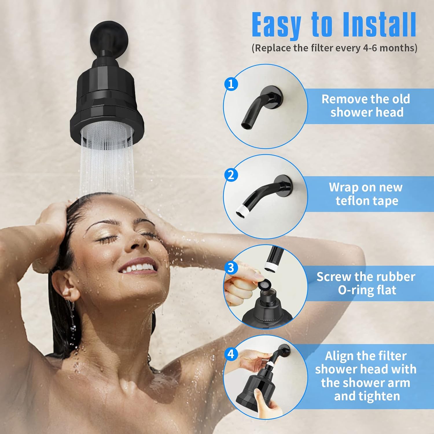 يستخدم نظام الترشيح ذو الخمس عشرة مرحلة طبقات متعددة من مواد الترشيح، بما في ذلك الكربون المنشط، وتقنية KDF (تدفق التحلل الحركي)، ومعادن متنوعة. يزيل هذا الترشيح الشامل الكلور والمعادن الثقيلة والشوائب الأخرى، ليمنحك مياهًا أنقى وأكثر نعومة، مما يُحسّن صحة بشرتك وشعرك.